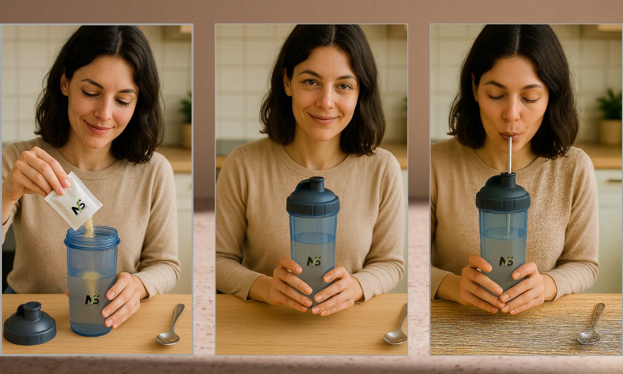 - Diluer 1 sachet avec du lait écrémé ou de l'eau.