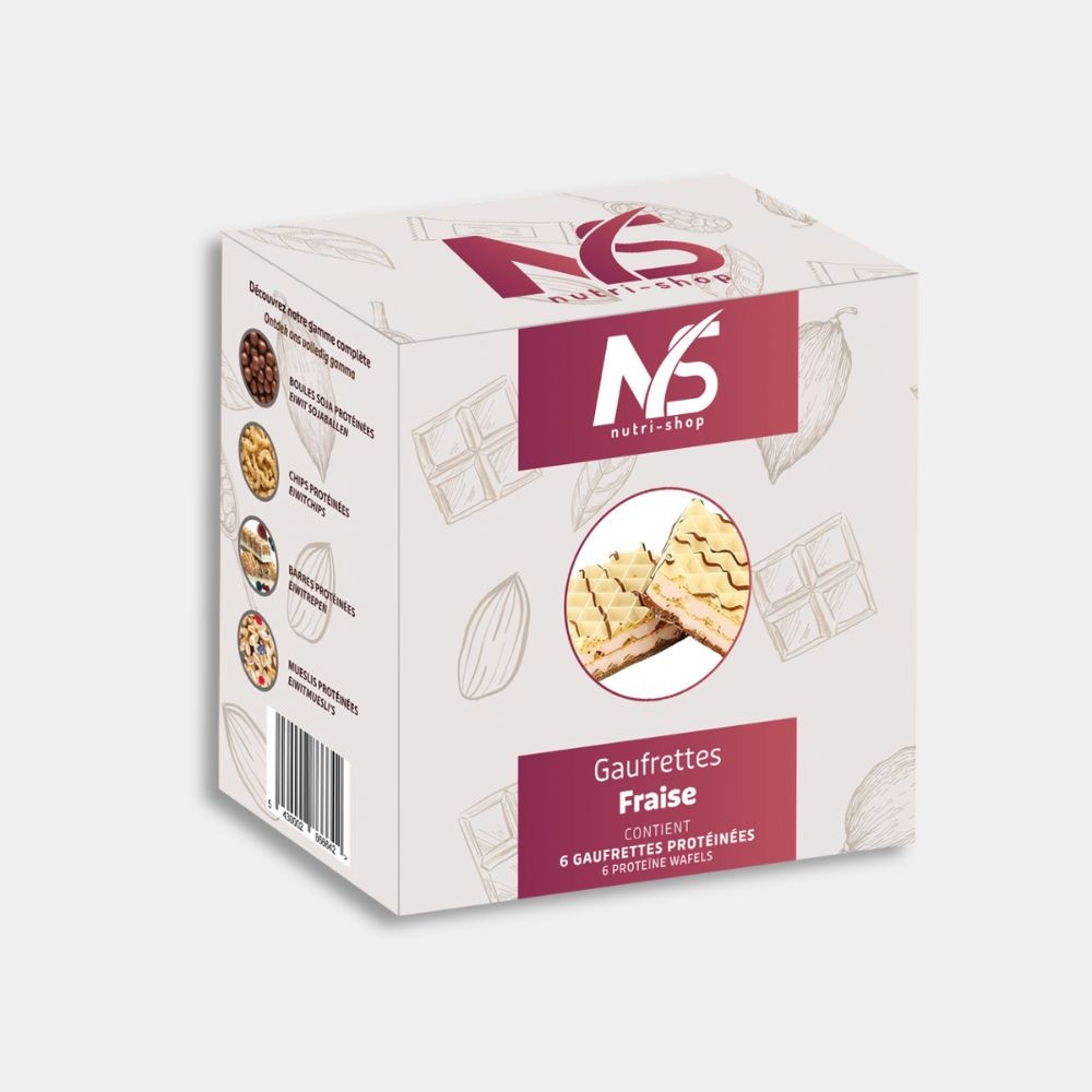 Gaufrette croustillante fraise riche en protéines (15 g) et en fibres — idéale en collation matinale ou à 16 h pour un en-cas sain et gourmand.