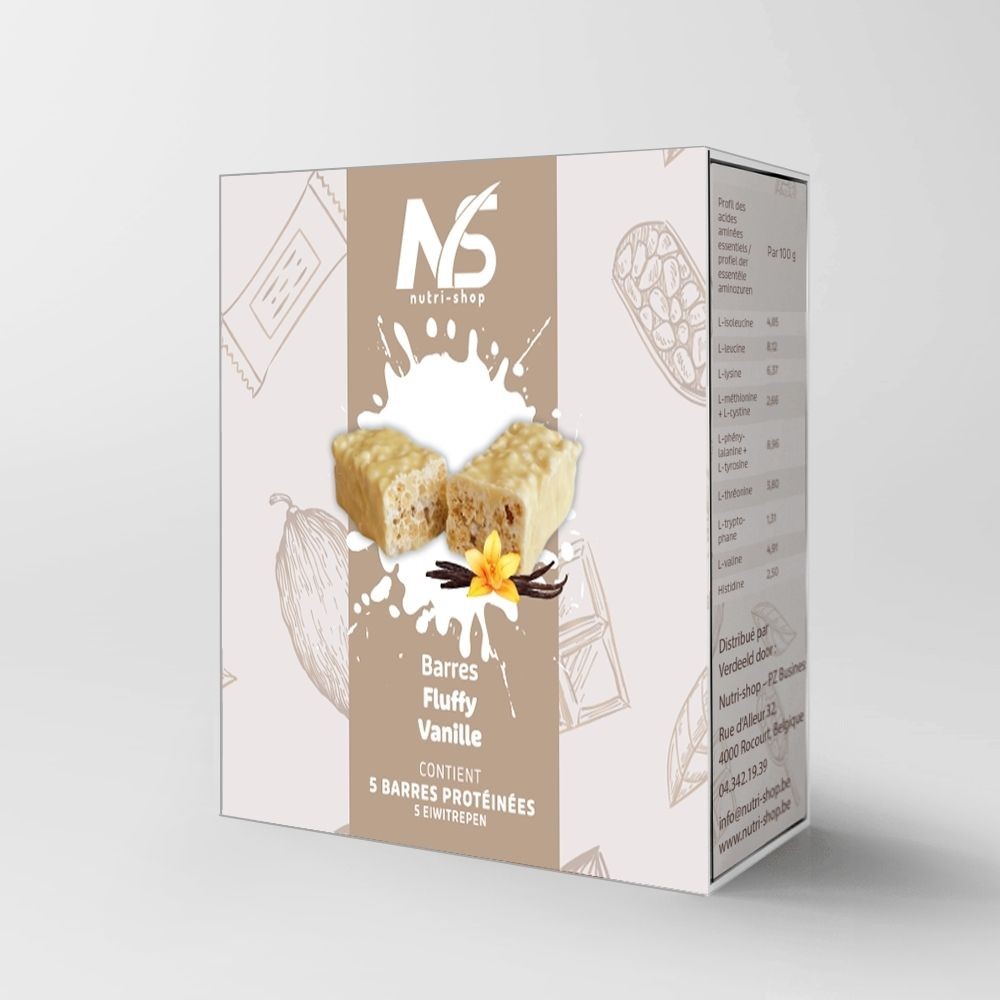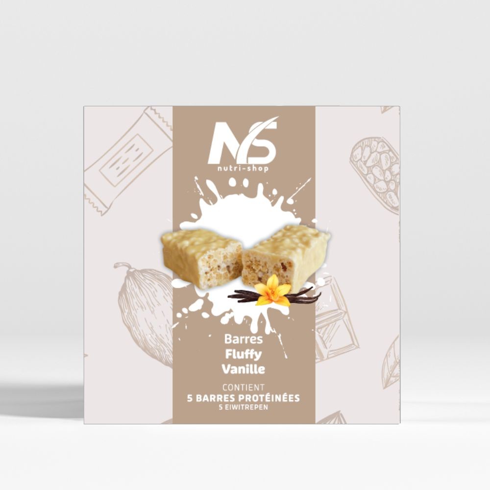 Barres fluffy à la vanille, riche en protéines (15 g) et en fibres — idéale en collation matinale ou à 16 h pour un en-cas sain et gourmand.