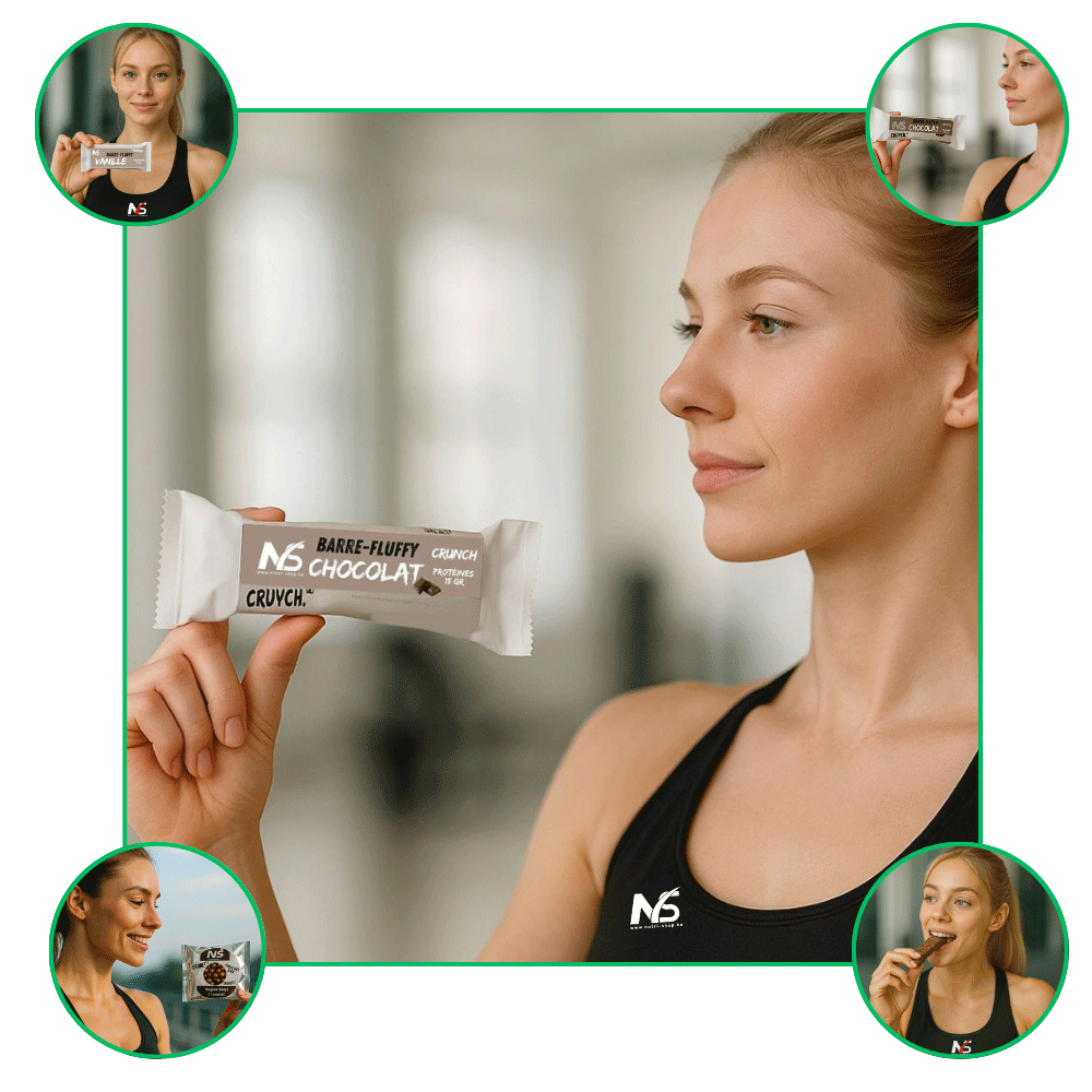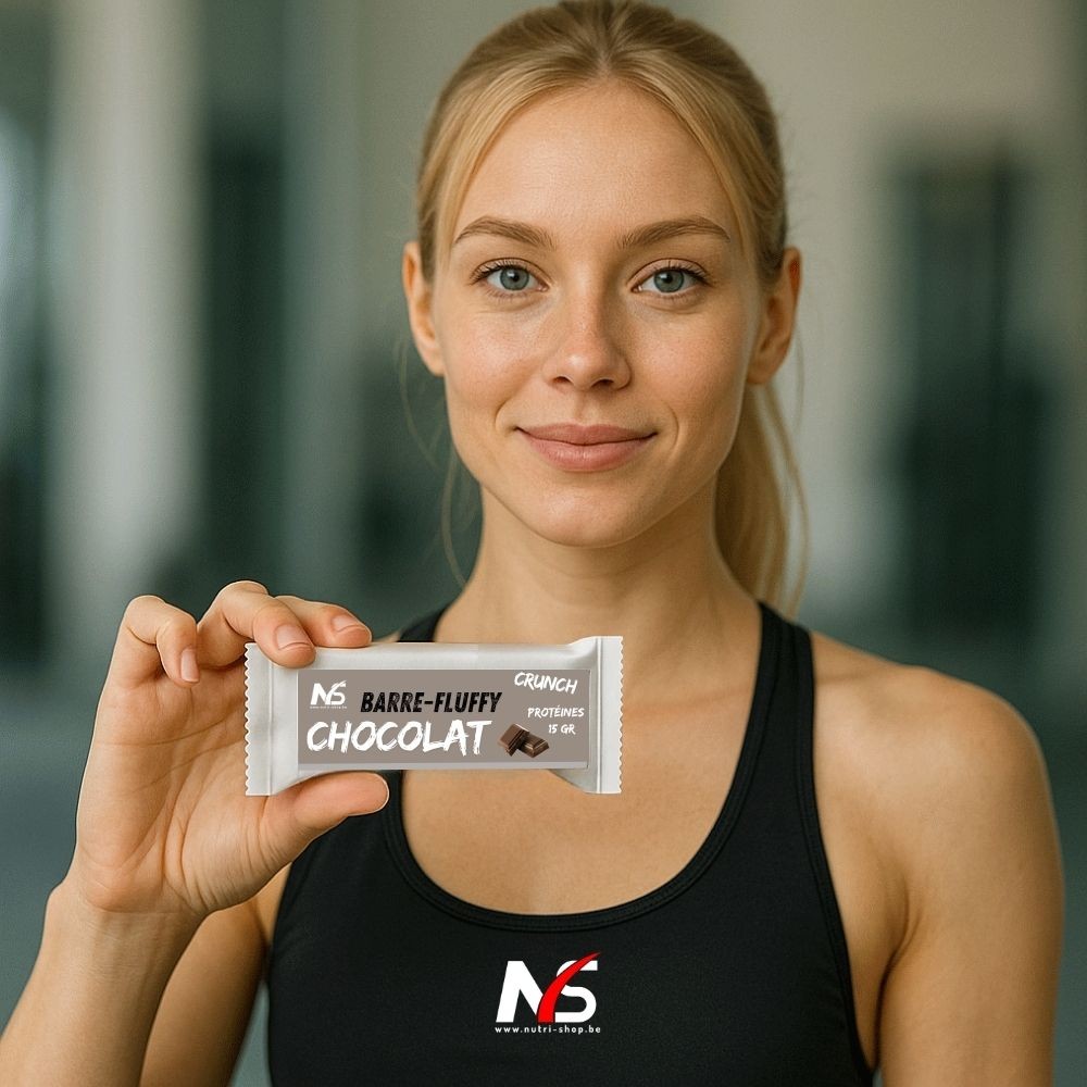 ✅ Craquez sans culpabiliser avec notre barre fluffy protéinée chocolat, un encas aussi savoureux qu’efficace ! Avec 15 g de protéines par portion, elle est idéale pour soutenir votre masse musculaire, combler une petite faim ou compléter votre apport journalier en protéines.